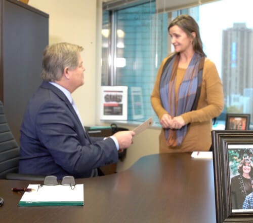 In the early morning hours our client was traveling to work with a friend when they came upon some headlights that appeared to be in their lane. It was dark, raining and foggy. A garbage truck had pulled into the wrong lane and was actually facing toward our client as he approached. Our client understandably thought that someone was in his lane and he was blinded by the headlights so he veered off the road to the right, driving into a ditch striking a telephone pole. Our client and his passenger got out to inspect the damage to their car, which was minimal. Another vehicle who also thought that the garbage truck was a vehicle coming at him in his lane and did exactly the same thing that our client did and hit our client as he was getting back into his vehicle.